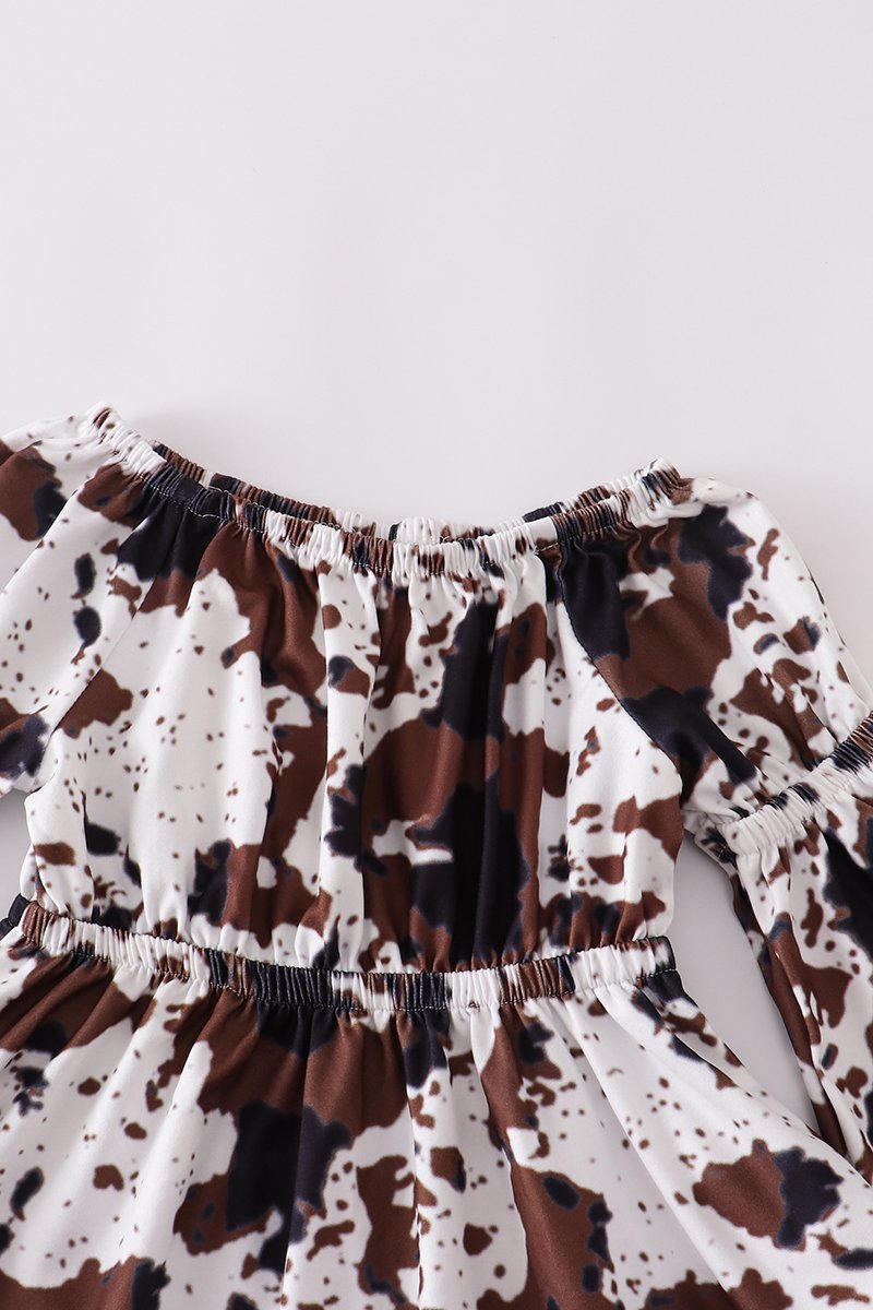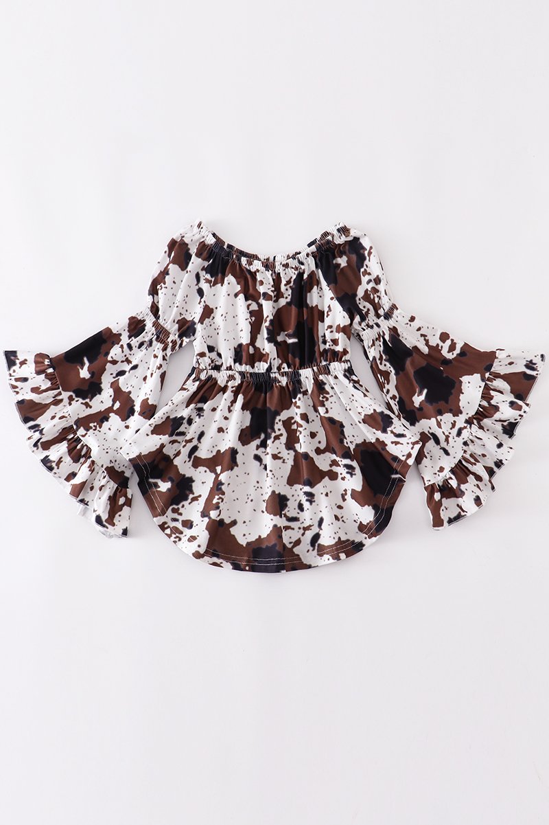 Cow Print, Bell Sleeve Tunic. Can be worn on / off shoulder